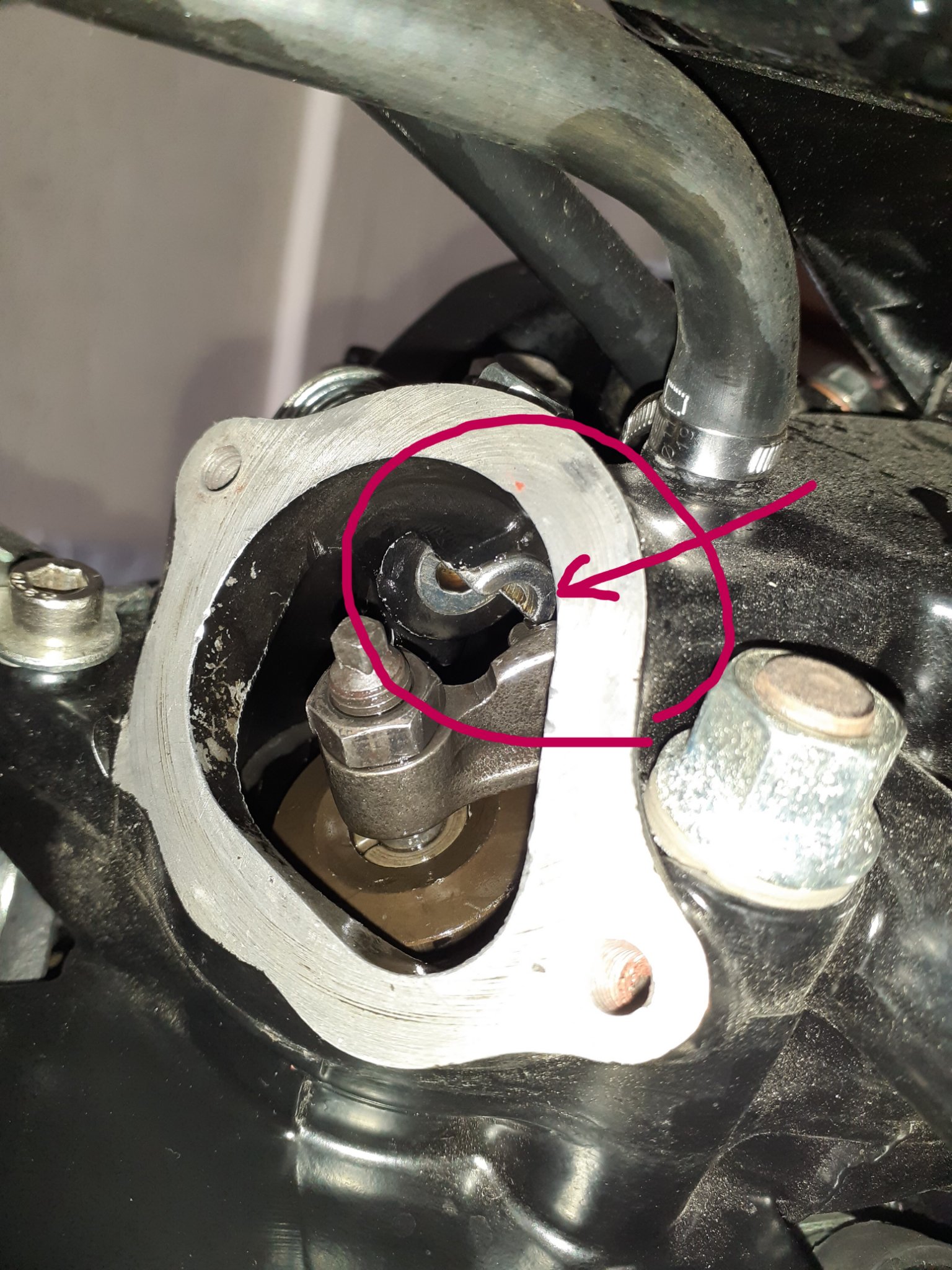 danke Georg ein sehr Interessante Seite .Ich war heute noch mal in meiner Garage und habe ein paar Bilder gemacht mit fragen .Bild eins Kipphebel Dekohebel hier am Pfeil berühren die beiden sich fast etwas 0,5 mm spiel dann drückt nach betätigen des Dekohebels am Lenker den Kipphebel nach unter Normal ? oder muß da mehr abstand zwischen den beiden sein ,blöd nur die Stellschraube am Zug ist schon bis Ende eingedreht.