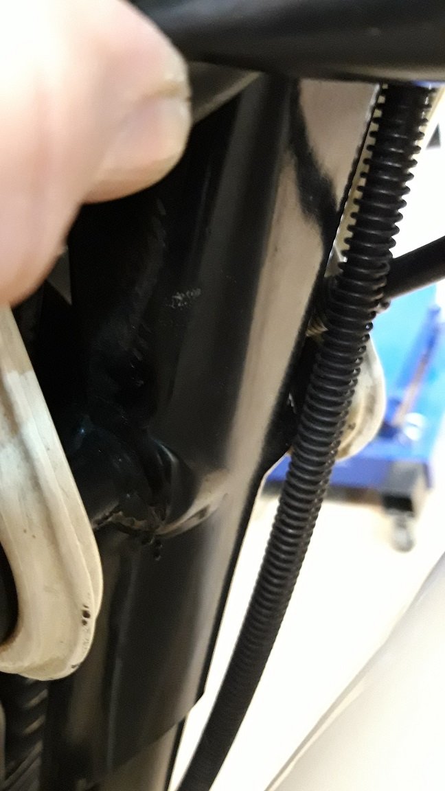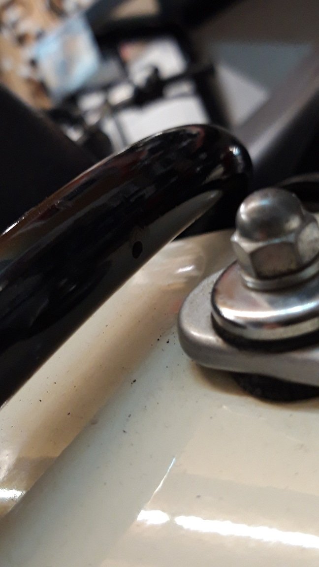 in der Rahmenschleife am Heck befindet sich eine kleine Bohrung (wofür auch immer) die wurde von Anfangs mit ca.3mm Bj.76-80 ? auf 4-5mm geändert ab Bj.80? jetzt reichts auch erstmal für heute... Tatort kommt gleich