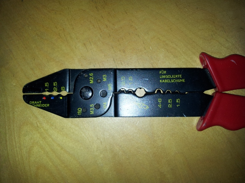 So, nun noch zur Zage - bist du sicher, dass du so eine hast (mit diesen ineinander greifenden Zähnen, nur mit so einer kannst du die Zugentlastung der Japan-Stecker richtig "einrollen") und nicht die "klassische" (in jedem "besseren" Werkzeug-Koffer bzw. -Set mit dabei) KFZ-Stecker Crimpzange wie hier dargestellt?