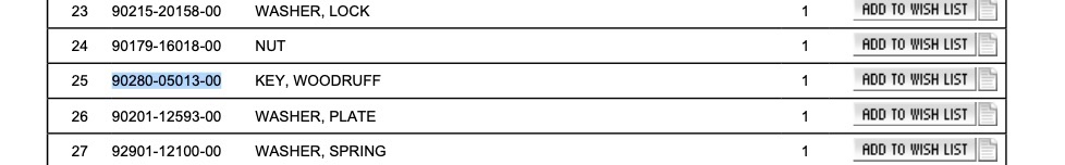 Kedo listet die Passfeder 90280-05013 nicht für die 250er.