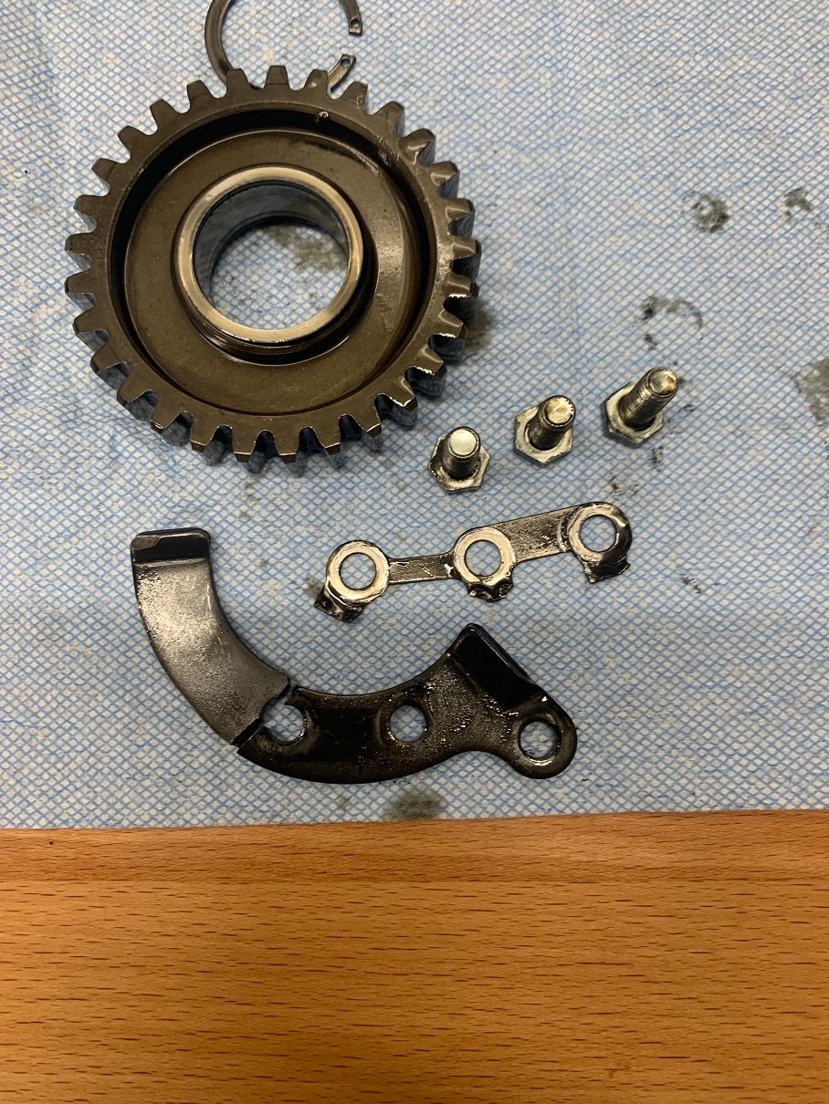 Beim Zusammenbau ist mir dann aufgefallen, das der Kupplungskorb auf der Welle ca 1mm spiel hat (also Axial, trotz angezogener Mutter). Das kann nicht richtig sein oder? Kommt mir auch so vor als ob er etwas zu weit auf der Welle sitzt. Bin am überlegen ob ich einfach eine dickere Unterlegscheibe unter die Mutter vom Kupplungskorb legen soll oder besser hinter den Kupplungskorb. vllt erkennt man es auch auf den Bildern.(roter Pfeil)
