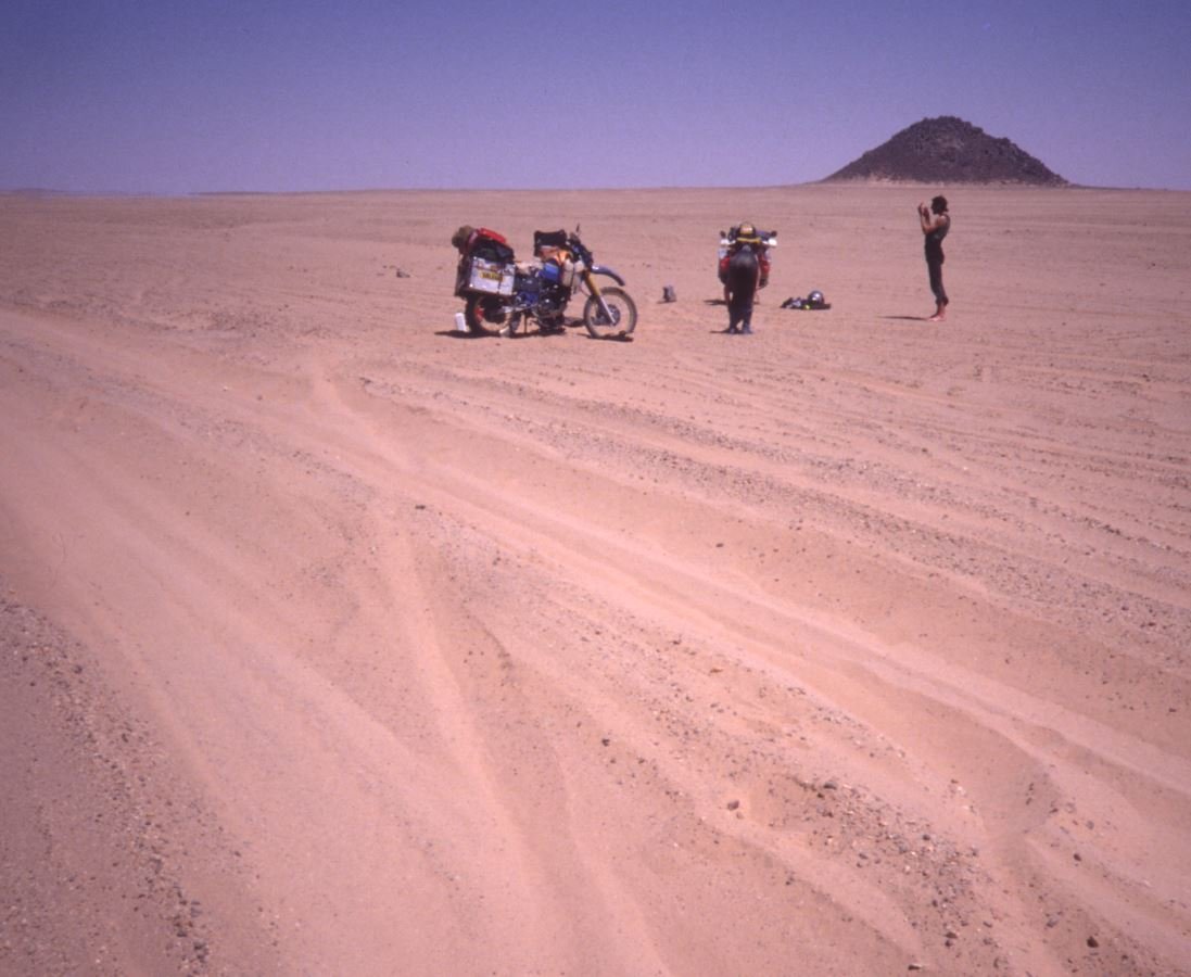 Mit 60 km/h geht es durch die flache Kieswüste. Zu spät erkenne ich diagonal kreuzende Spurrillen. Vollbremsung!