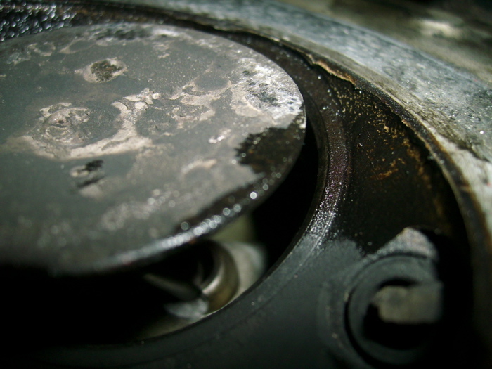 Ventil hat sich saugend auf den Kolben gelegt - nur ein kreisrundes ankratzen dessen und wie einen gekrümmten Finger umgelegt -