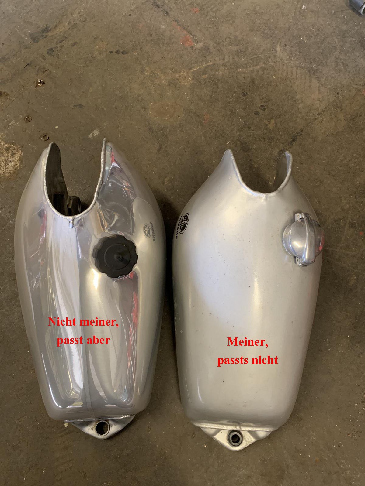 Ich habe eine XT 500 EZ 1980. Ich habe das Gerät ohne Tank und mit eine separaten Sitzbank (also nicht verbaut) bekommen. Die Gute steht bei mir schon ein paar Jahre und ich habe mich jetzt mal drüber gemacht. Ich hatte dann vor lauter Übermut auch gleich mal eine Alu Tank dazu gekauft, um dann festzustellen, dass der nicht drauf passt. Der Ausschnitt oben zum Öl-Einfüllstutzen ist nicht weitgenug ausgeschnitten und die Aufnahmen vorne und hinten passen nicht auf die Befestigungspunkte. Jetzt habe ich von einem guten Freund mal testweise einen Alu-Tank draufgehalten, der drauf passt.