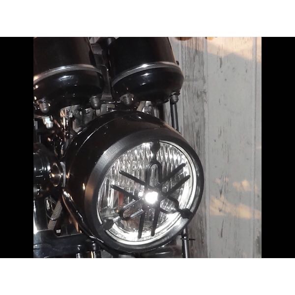 Vor Jahren, als mal konkrete 'Schottertouren' anstanden, bei denen Vorausfahrende ja durchaus ordentlichen Steinschlag hochschaufeln können, hatte ich mir zuvor für alle Fälle dieses Plastikteil beschafft, das exakt auf den XT-Scheinwerfer passt. Die Idee war, das Dingens lose dabei zu haben und nur bei Bedarf mit einer Art Schnellverschluss (geeignete Gummischnüre o.ä.) dranzuschnallen, es sollte absolut keine Dauereinrichtung werden.