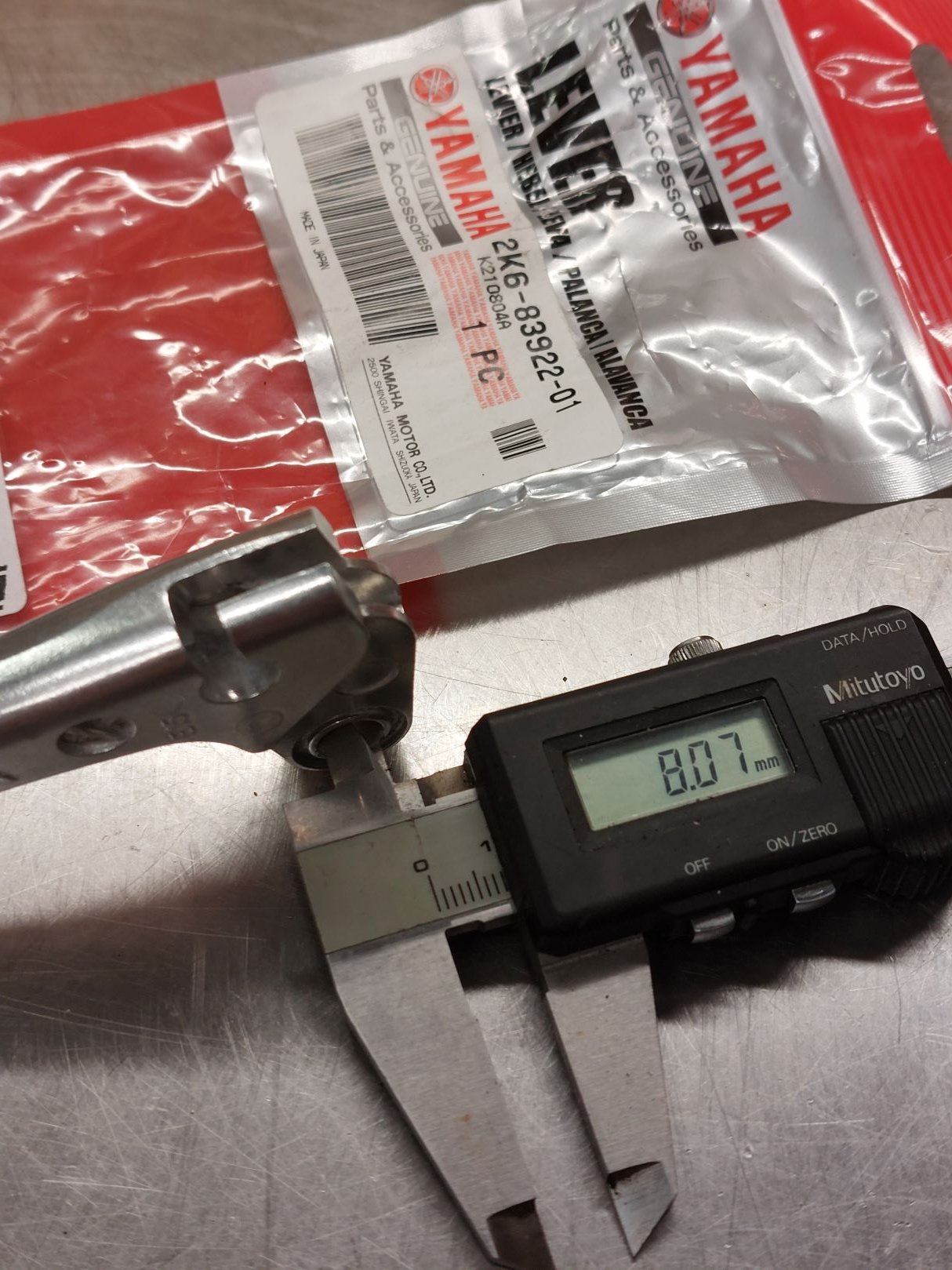 die Bolzen haben im Funktionsbereich ein Dm von 7,81mm die original Hebel haben eine Bohrung von ca. 8,07mm , also schon mal reichlich Spiel... ...und die Replika haben sogar 8,27mm