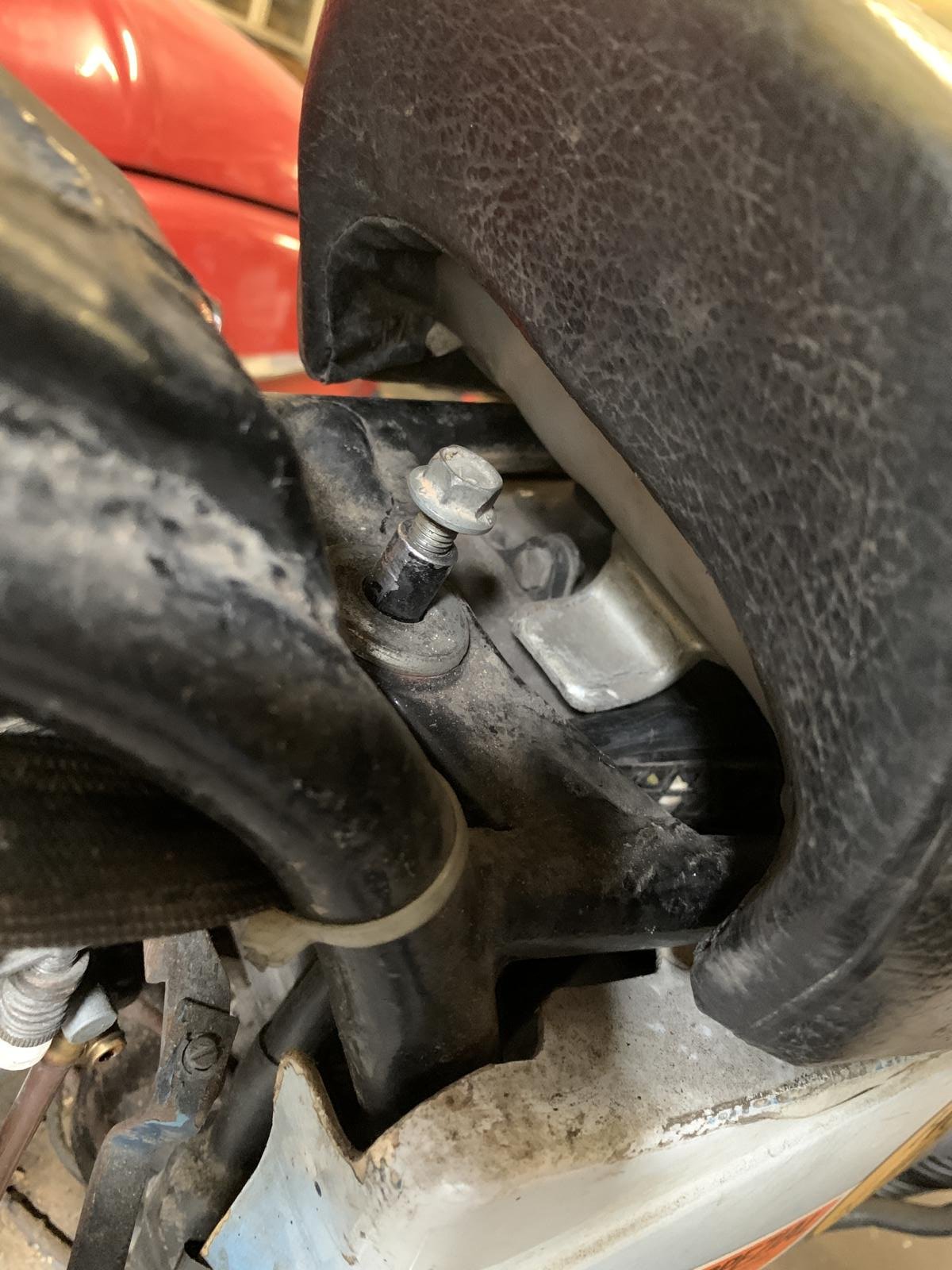 Die Sitzbank ist auf dem Bild an den hinteren beiden Haltern am Rahmen verschraubt. Da hängt die Bank und die Zunge vorne in der Luft und hakt weder am Rahmen noch am Tank ein.Hakt die Sitzbank denn unter dem Tank oder Rahmen ein?