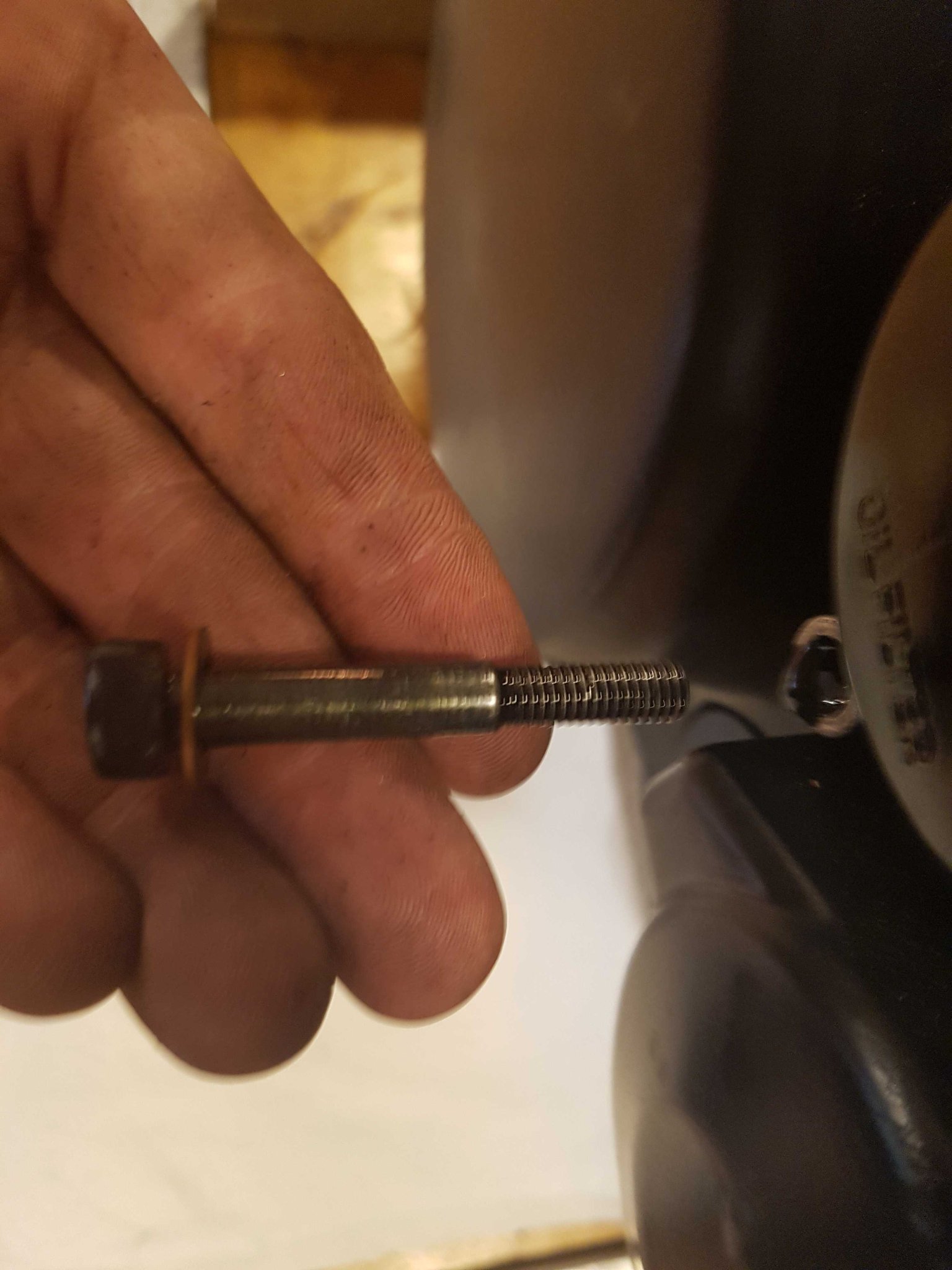 auf der rechten Seite langen 2 Gewindestangen mit 2 gekonterten Muttern. Die Bohrungen im Block sind Durchgangslöcher und irgendwann drücken beide Stangen gegen die Kurbelwelle und somit die rechte Hälfte von der Kurbelwelle.