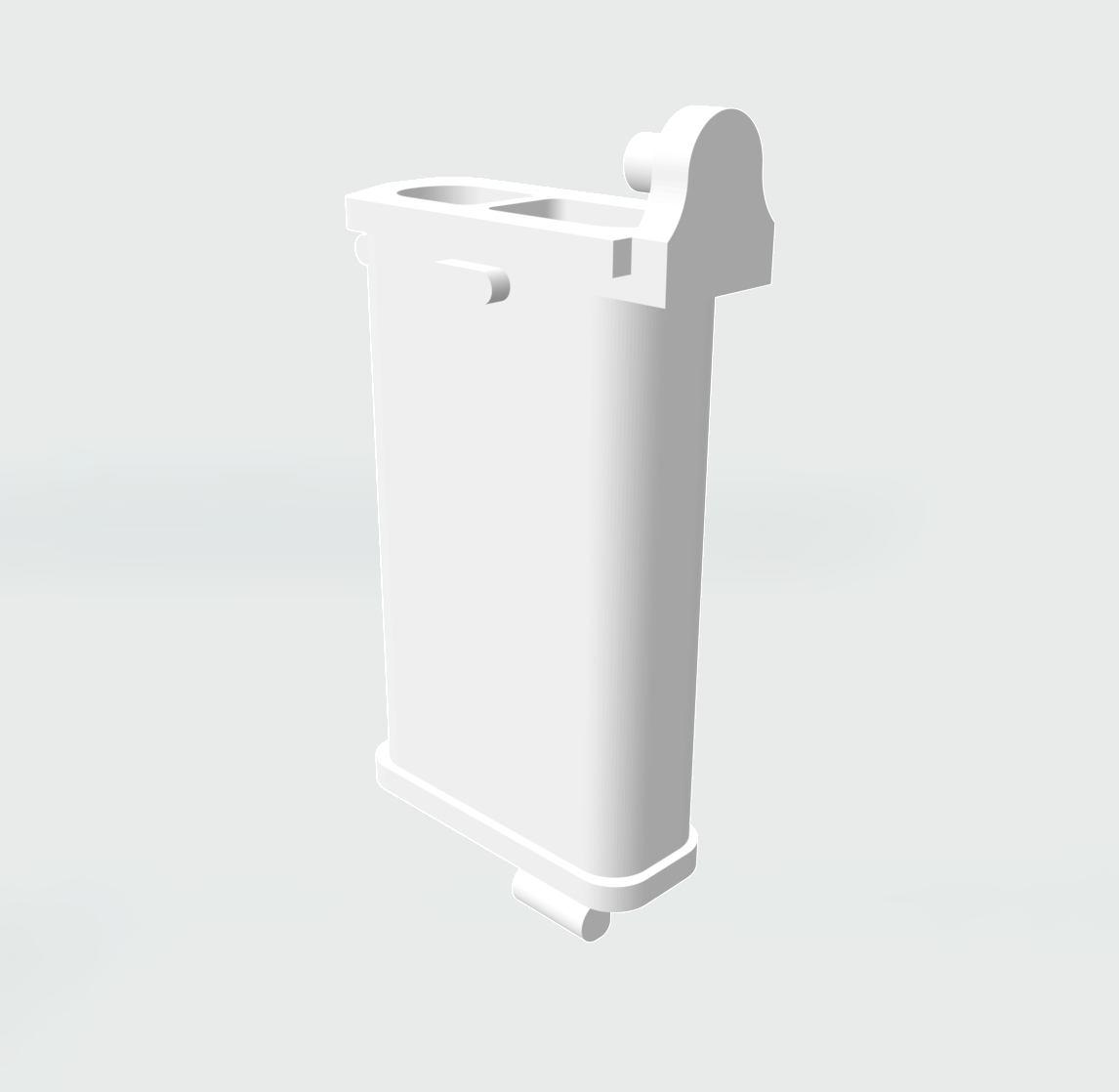 Das gerade Teil war ganz knapp zu kurz zum einfädeln der unteren zylindrischen Nase im Gehäuse. Allerdings ist glaube ich das Gehäuse nicht super präzise gefertigt. Ich habe die Aufnahme im Gehäuse zum Einfädeln ein klein wenig konisch geschnitzt.