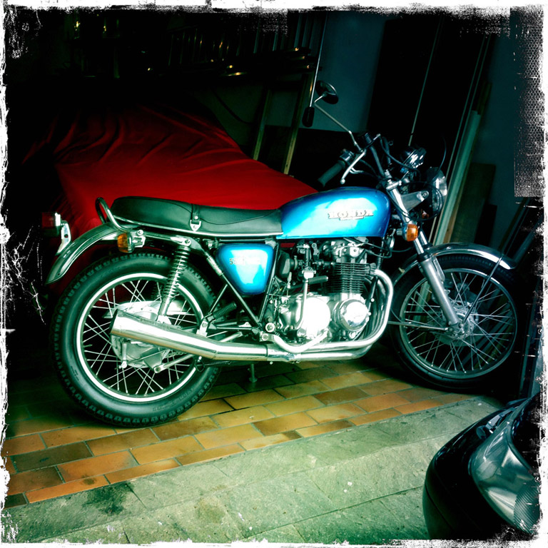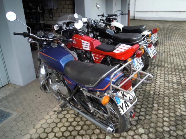 Da ich ja eh in der Garage war und die Else auch schon ganz hinten angekommen war habe ich mal alle meine Schätze raus gekramt. 2 mal XS 400 und eine Triumph Bonneville von 1979 hab ich noch. Wobei die blaue XS mein erstes Moped war und auch geblieben ist.
