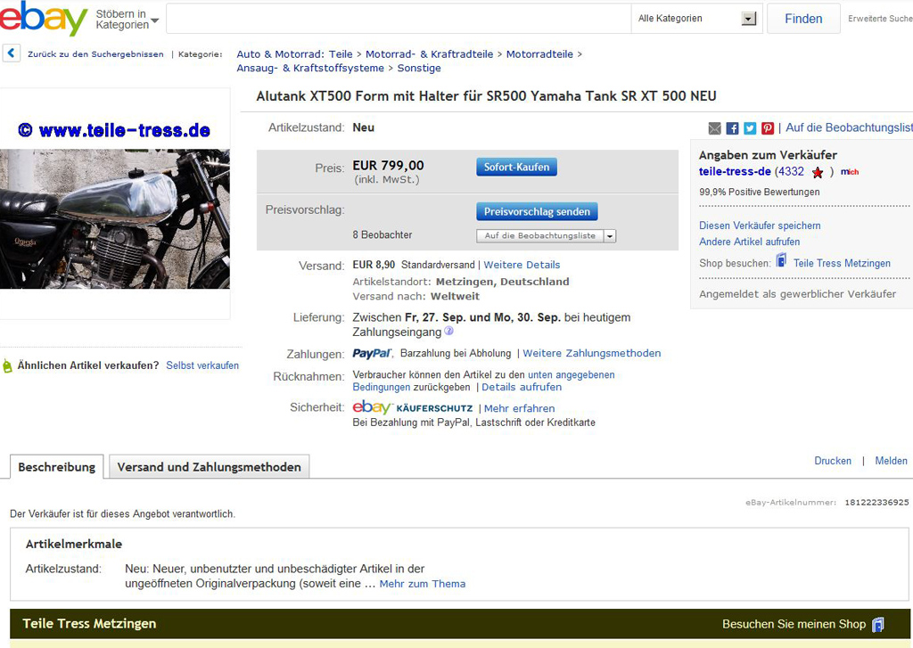 Beruhigt Euch Jungs. Die 400 Euronen für die KLX Schwinge waren ein Tippfehler. Habe ich erst am anderen Tag bemerkt.