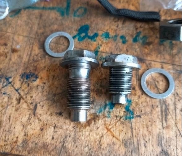 Hallo zusammen , hat jemand die Abmessungen der Original Hohlschraube am Zylinderfuss zum Anschluss der Steigleitung griffbereit ? Laenge ohne Kopf , Bohrung innen und Bohrung nach aussen, Gewindelänge ? Möchte nicht erst meine rausdrehen zum Messen falls jemand eine liegen hat.Foto mit Zollstock daneben wäre auch ok.