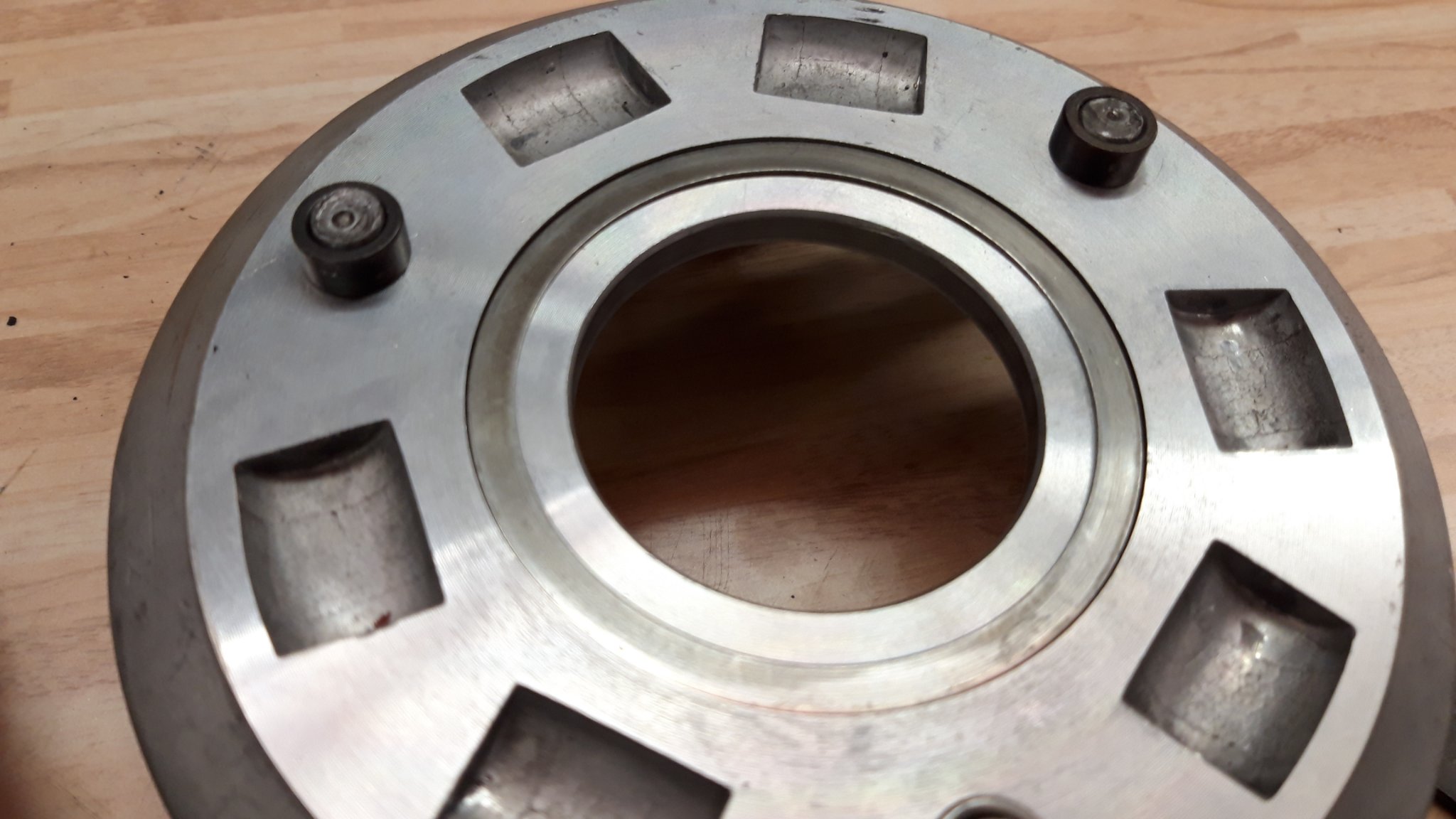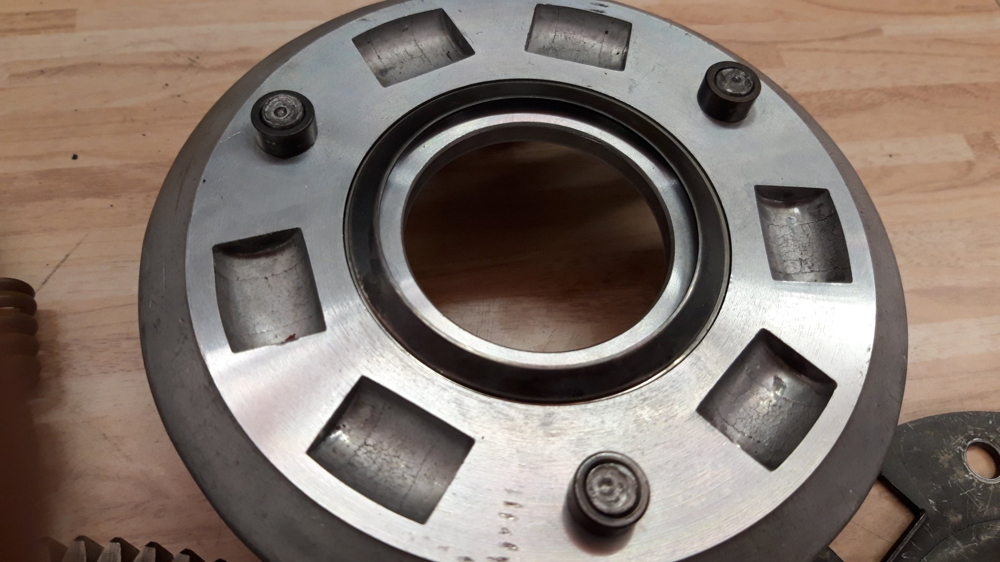 also es geht immer noch um ein Bauteil das aus mehreren Einzelteilen besteht, man kann es an den Bolzen/Stiften aufbohren und dann in den Einzelteilen zerlegen, unter anderen kommt dann diese Hüse/Ring zum Vorschein