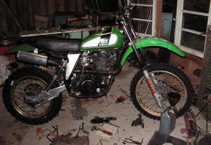 Meine Bedenken wegen zuwenig Nachlauf und einer daraus resultierenden nervösen Lenkung erwiesen sich als unbegründet. Auch auf schnellen buckligen Vollgaspassagen keine Tendenz zum Lenkerschlagen oder sonst irgendwie verschlechtertem Geradeauslauf. Das Kurvenverhalten würde ich (gegenüber vorher) als excellent bezeichnen. Selbst im Kleinklein mit engen, steilen Sandauffahrten mit Kurven und Kehren lässt sich alles präzise wie angesteuert durchfahren. Schnelle Hartbodenkurven mit losem Schotter drauf gehen mit Kopf überm Lenker im Stehen, bei (zu) hartem Rausbeschleunigen aus Kurven spurt das Vorderrad und das Hinterrad leitet einen kontrollierbaren Drift ein. Die Tendenz zum Untersteuern mit schiebendem Vorderrad ist vollständig weg (konnte ich erst gar nicht glauben). Somit war die Änderung des Lenkkopfwinkels exakt die richtige Lösung für ein deutlich handlicheres Fahrwerk in einem XT500-Rahmen mit längeren Federwegen.