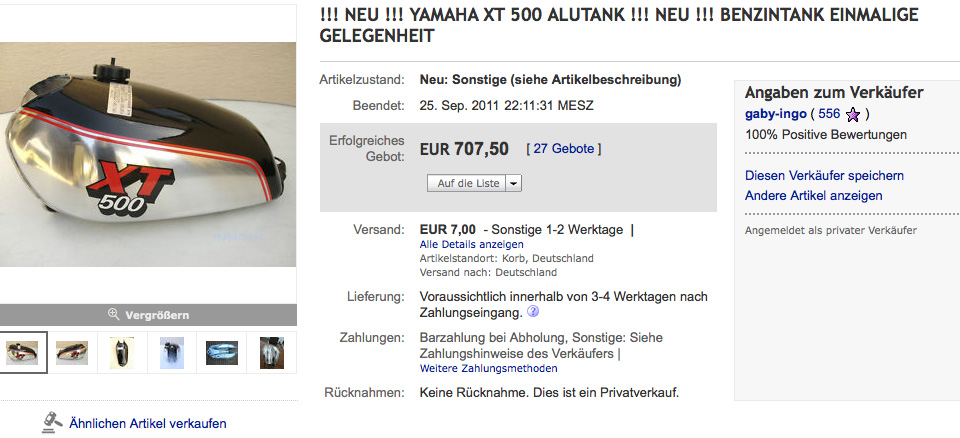 Würde mich nicht wundern, wenn XTs bald analog dem Motoren-ohne-Lichtmaschinen-Gebaren zukünftig häufiger ohne Tank veräussert würden ...