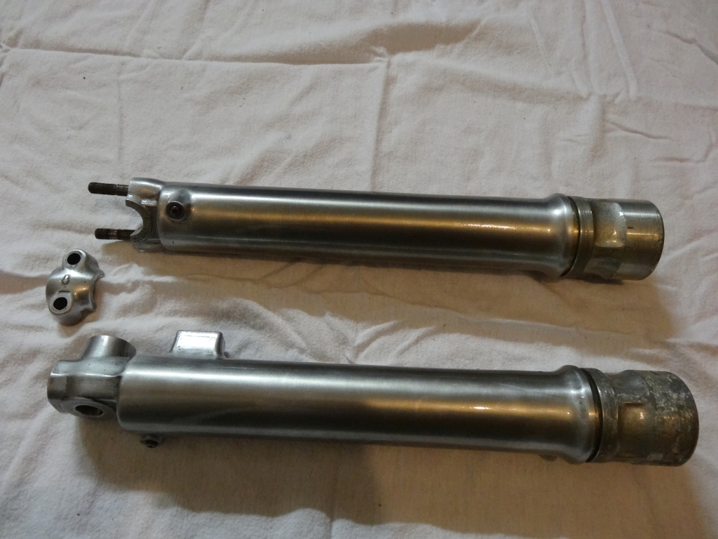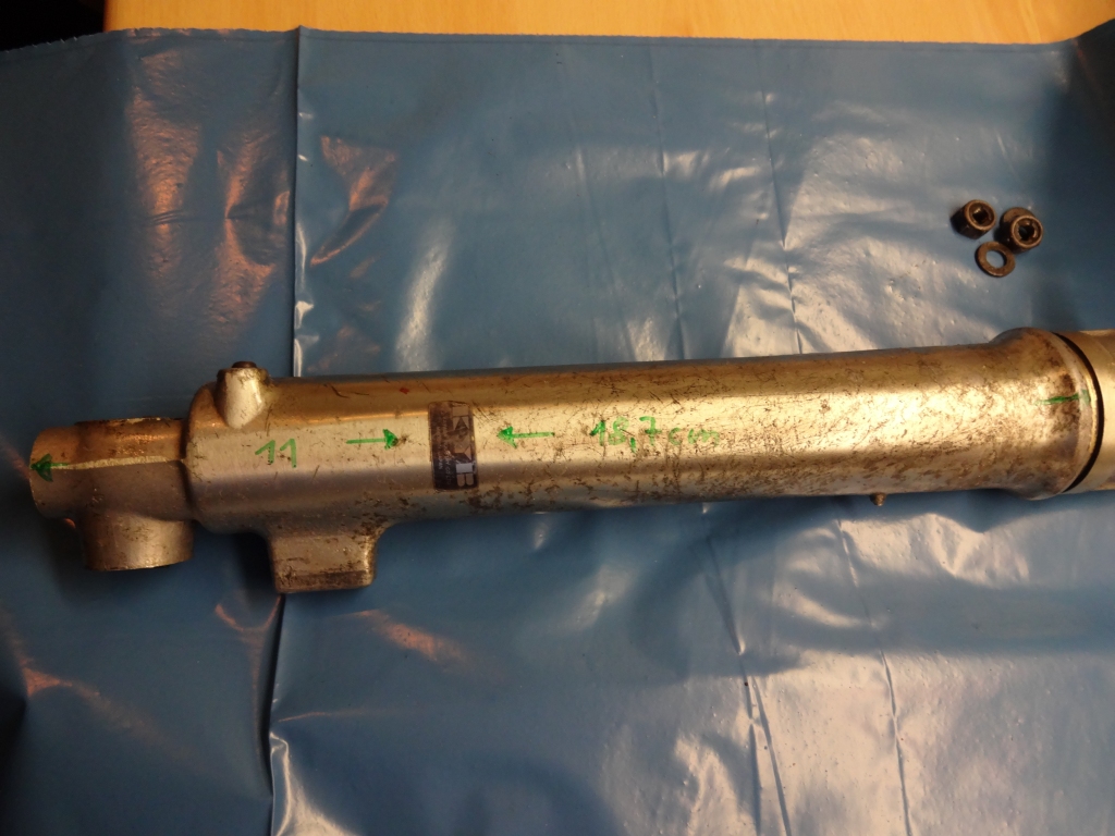 Die Gabelholme wurden blank geschliffen (nicht poliert!) und mit 2k Klarlack klar lackiert (selber mit Dose).
