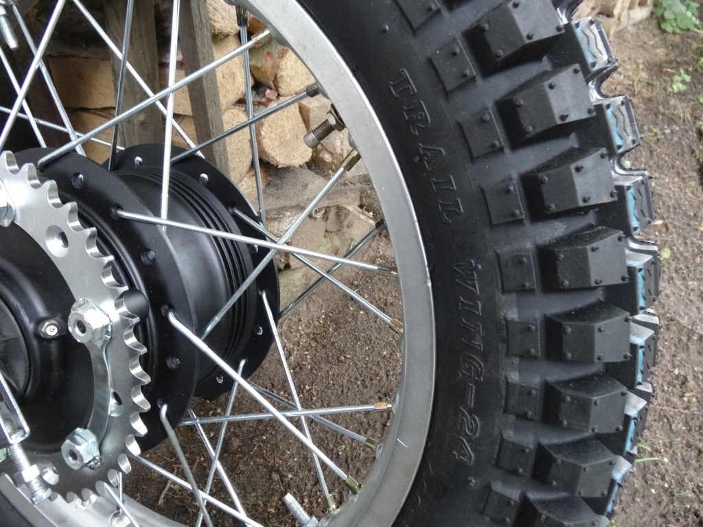 Die Felgen wurden komplett ausgespeicht und der Kettenblatträger mit einem 6006er Lager und WeDi nachgerüstet und wieder unter der originalen Staubkappe versteckt.