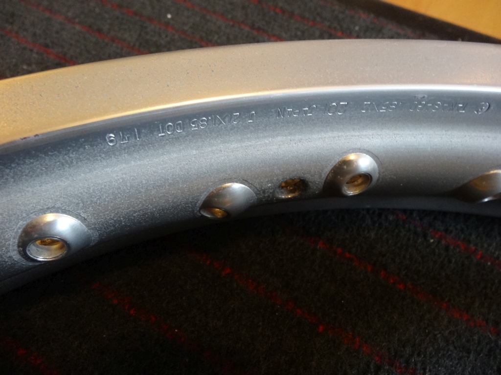Die beiden Felgenbänder wurden vom Fachmann gebürstet (nicht poilert!) und klar eloxiert. Die sehen nun aus, wie gute Gebrauchte und haben einen entscheidenden Vorteil gegenüber vorher: Never-ever-NEVR-DULL !