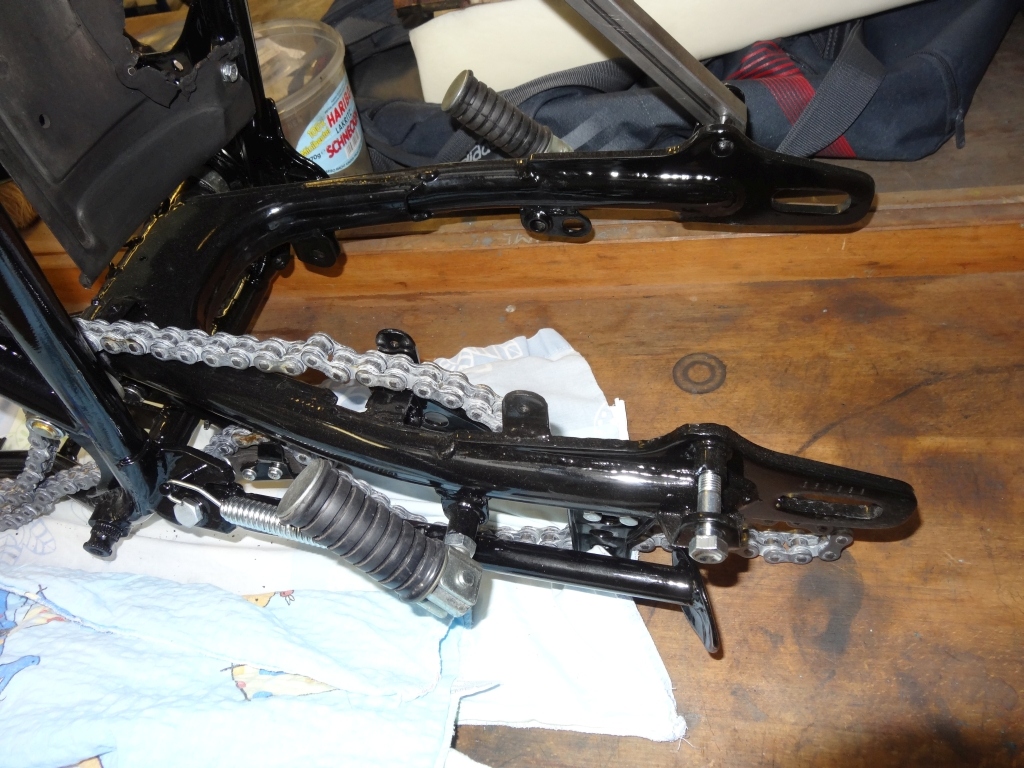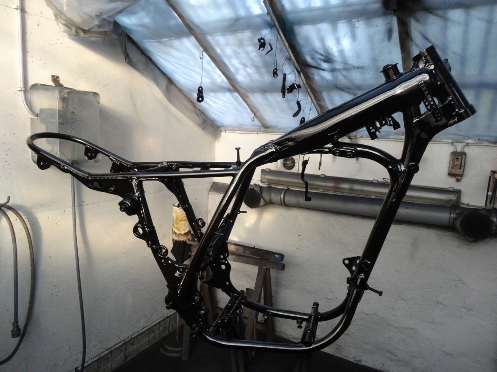 Danach ging es an das Vorbereiten der übrigen Teile - vom Rahmen bis zum Schlauchhalter. Diese wurden ebenfalls mit Grundierung und 2k-Lack, jedoch in seidenglänzend lackiert.