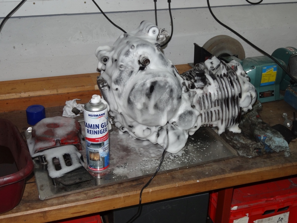 Der Motor wird so gut es geht gereinigt und mit dann Granville lackiert.