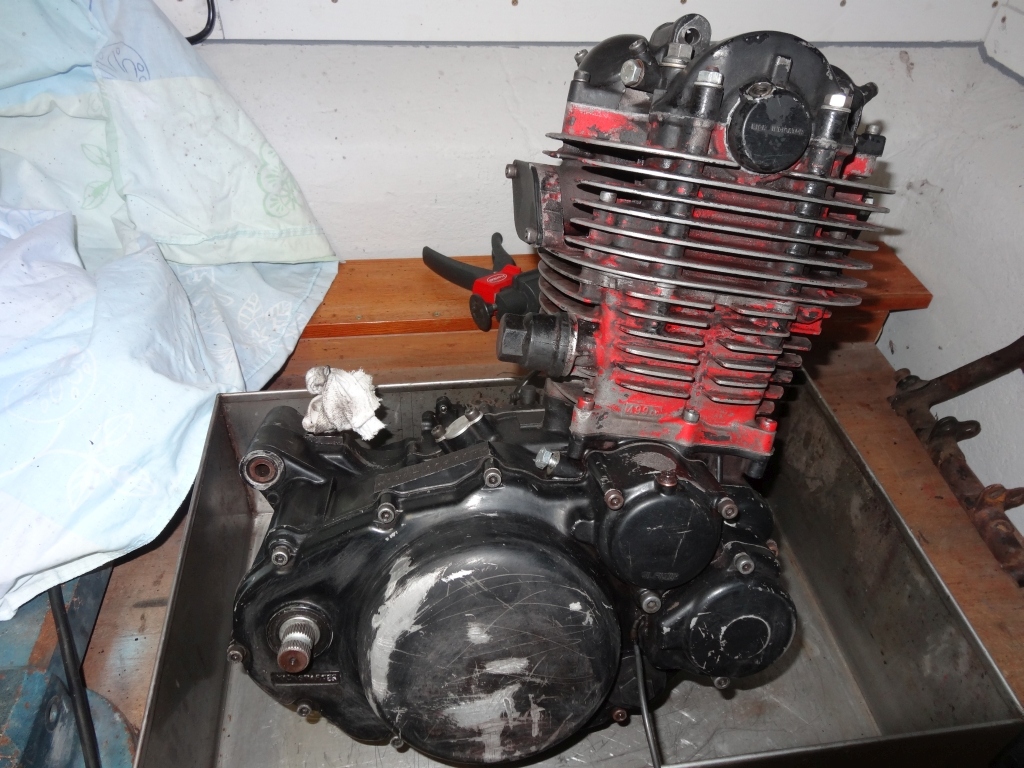 Sie war seit 1990 stillgelegt, der Motor wurde 1995 bei Yamaha "obenrum" überholt, die Schwinge neu gelagert und halb zusammengesteckt wieder an die Seite gestellt.