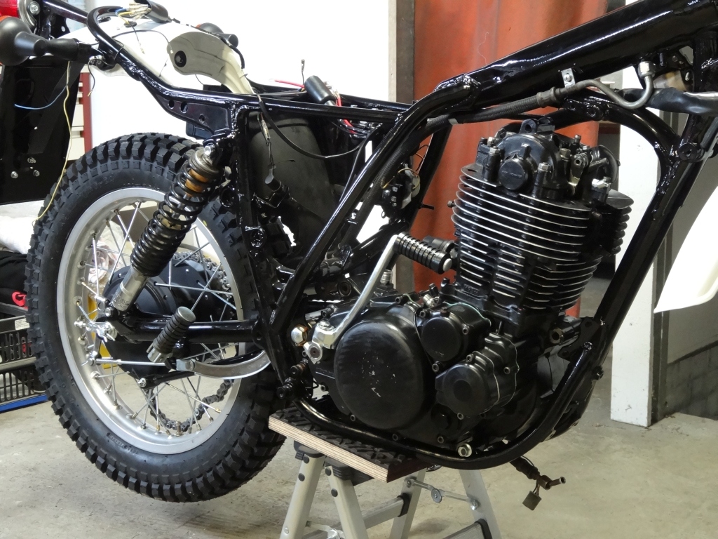 Ende Januar fuhr ich dann mit einem Abstecher bei Yamaha Müller den Tank, die Kotflügel vo+hi und die Seitendeckel nach Willebadessen zum lackieren.