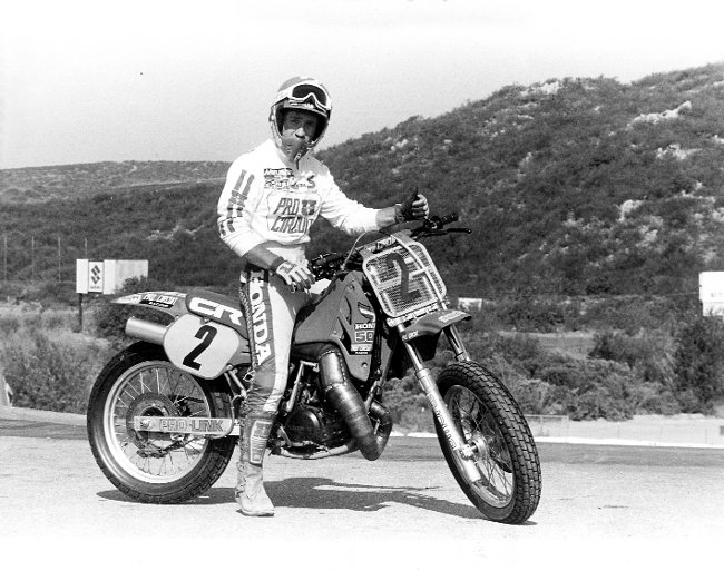 Das dicke Vorderrad ist garantiert nicht der (damals noch nicht) aufkommenden SuperMoto-Bewegung geschuldet, sondern den amerikanischen Flachbahnrennern, den Flattrackern. Die Mopeds unterscheiden sich von den europäischen Sandbahnrennern erheblich.