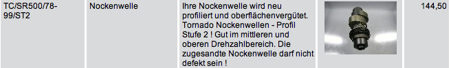 Diesbezüglich denke ich an den Großewächter Tuning Kit Stufe 2, mit der Nockenwelle Stufe 2. (Bild s. unten)