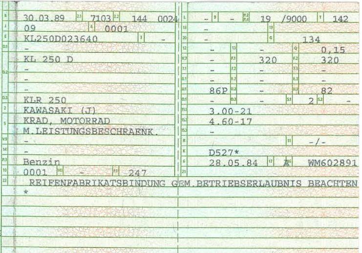 Zusatz: hier der aktuelle Katalog, die KL250D (das Modell sollte es nach Schlüsselnummer und Baujahr sein) ist aufgeführt: