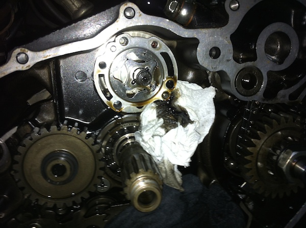- Als ich das Guckloch aufgeschraubt habe, das man für die F und T Einstellung bei der Zündungseinstellung benötigt, konnte ich schon einmal die Hälfte vom Öl ablassen (gut / schlecht / normal / keine Ahnung ... ich weiß nur, dass ich an einer anderen XT die Zündung schon gemacht habe und da lief definitiv kein Öl raus, als ich das Ding geöffnet habe ...).