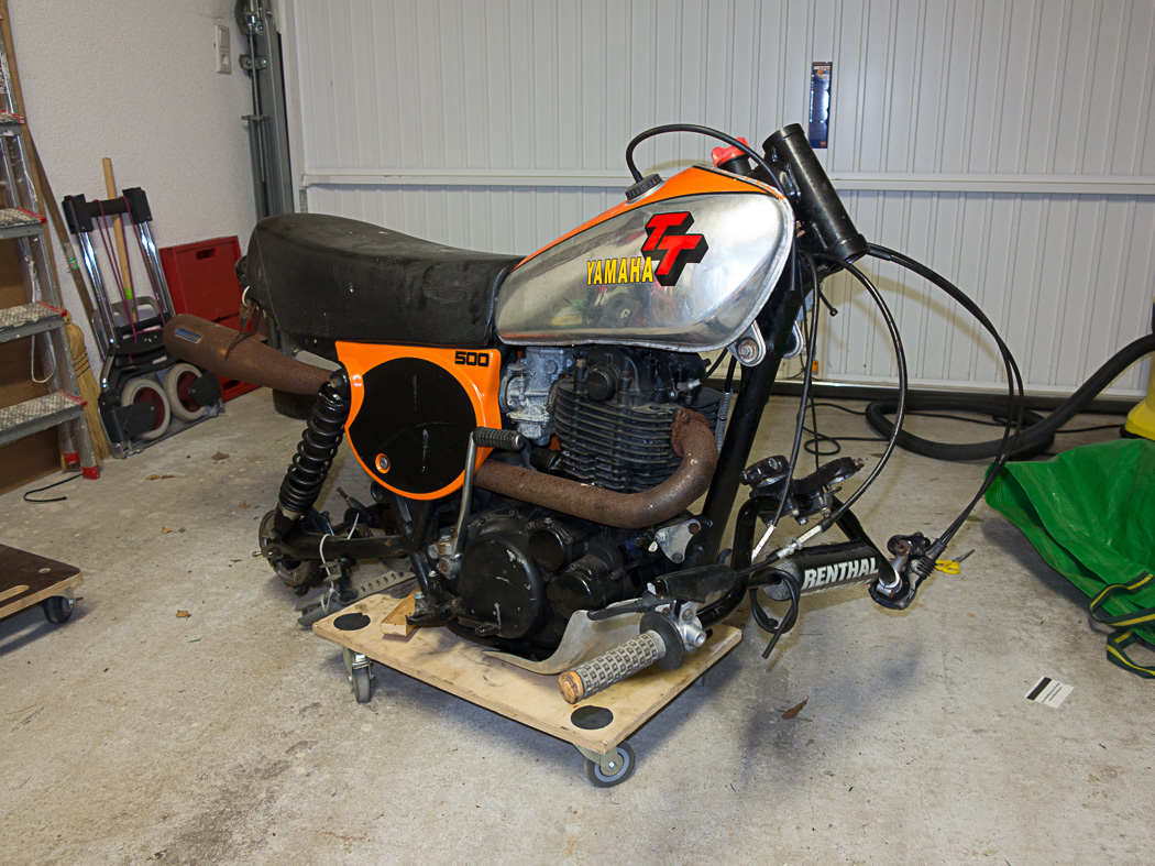 Auf meiner Liste steht jetzt die Elektrik usw.! Ich habe mich dafür entschlossen einfach erst mal eine original/Replika XT Kabelage zu verbauen. Die LiMa scheint schon von einer XT zu sein ( 3 Kabel, schwarz weiss,gelb – einer der Vorbesitzer hatte das wohl auch schon mal vor) Habe einen orig XT Scheinwerfer, TT Replika-Rücklicht usw.