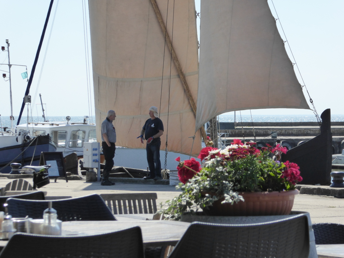 Noch schicker war die Versorgung in dem kleinen Bistro am Hafen, denn dort gab es hausgemachte Saft-Getränke und handgedengelte, extrem leckere Tomatensuppe mit Sahne und frischem Basilikum bei einer sehr freundlichen Wirtin. Jens kam mit dem Vater der Wirtin ins Gespräch, der uns einen Campingplatz ganz im Nordwesten von Hiiumaa empfahl.