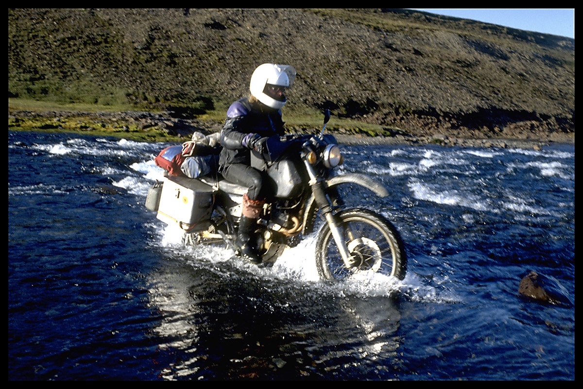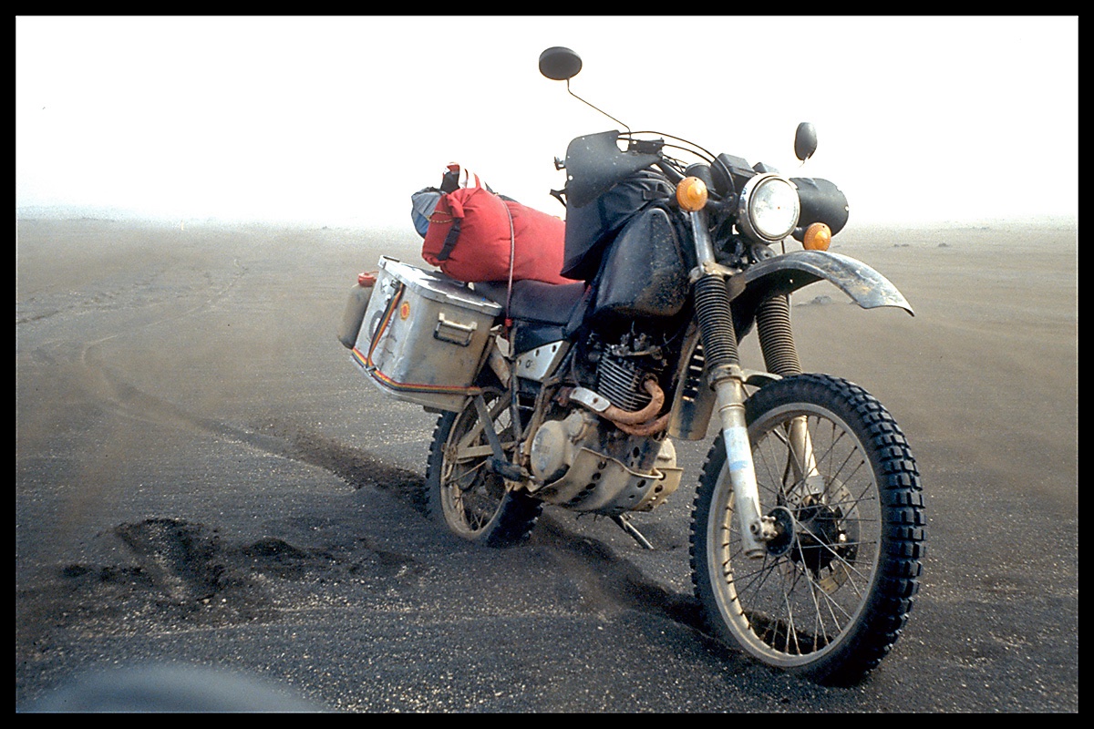 Eine der blödesten Aktionen noch mit Trommel war nach einer Flussdurchfahrt auf Island. Wenn die Trommel mal geflutet war, bremst sie ja erst mal ausgesucht schlapp bis gar nicht mehr. Mit dem Wissen habe ich hemmungslos am Hebel gezogen, aber irgendwie war es doch schon trocken in der Trommel... mitten in der sogenannten Missetäterwüste lag ich dann mit blöd verbogenem Kofferträger in der Vulkanasche. Ich war dann noch 2x mit gleichem Moped und Scheibe dort. Das war entspannter. Federweg, Dämpfung und Ansprechverhalten waren natürlich auch besser.