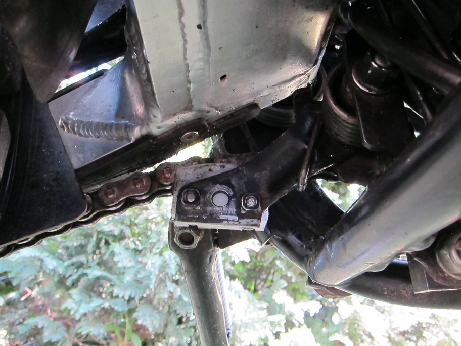wie schon geschrieben, sind die befestigungspunkte die hintere untere motorhalterung und das freie auge am rahmen direkt darunter (im unteren bild unten rechts noch teilweise zu sehen)