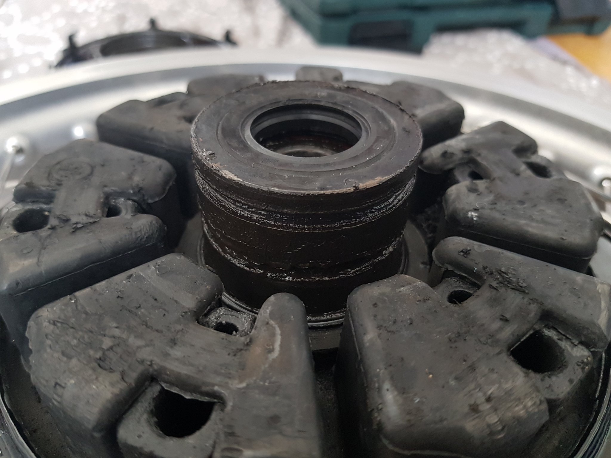 Mal Gummis wegbauen und den Nabenstumpf und den KBT reinigen.