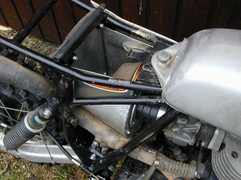 Der großdimensionierte Kasten um den Filter (Volumen möglichst 10x die ccm des Motors) reduziert das Ansauggeräusch auf straßentaugliches Niveau und schützt den Luftfilter vor Allem vor Wasser, Schlamm, Staub usw.