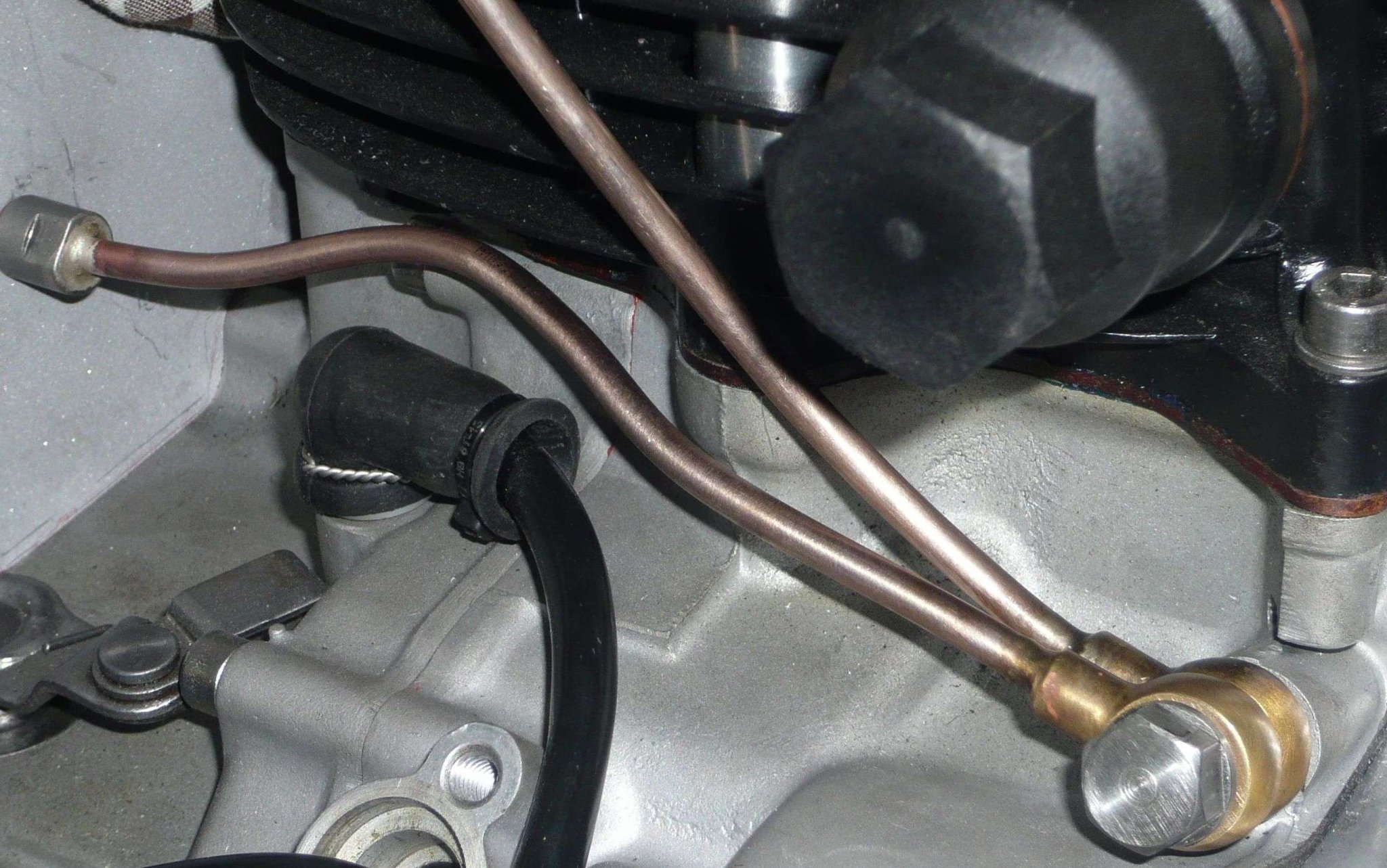 Der erste Ringanschluss mit der Leitung zum Kopf hat eine 3mm Bohrung, der zweite Ringanschluss mit der Leitung zur Lima nur eine 2mm Bohrung.