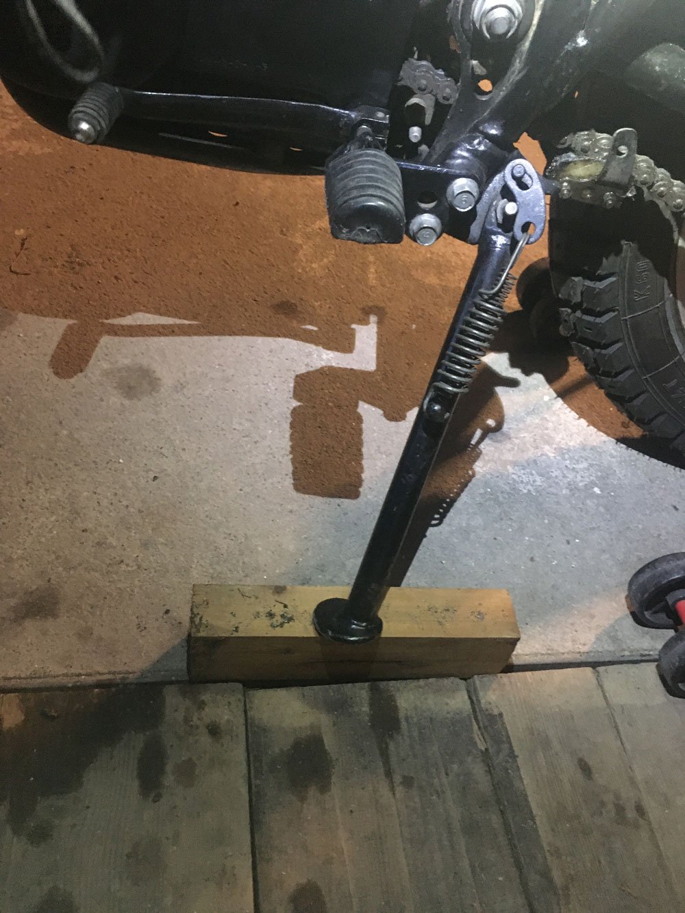 Die Ständeraufnahme biegt sich gerne auch auseinander und das gerne auch immer mehr je schräger das Moped steht.