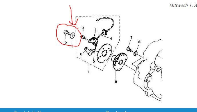 Ist das die Schraube vorne auf der Welle, sorry ich kapiere es nichtum das Unterbrecherantriebsrad im Motor zu belassen, musst du vor dem Abnehmen des Motorseitendeckels die M6 Sechskantschraube auf dem Unterbrechernocken rausschrauben.