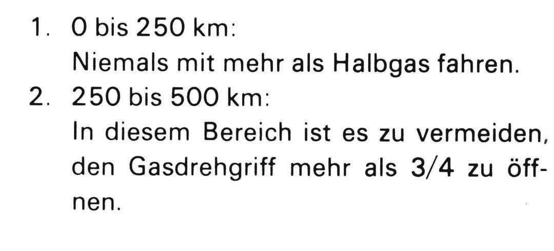 Falls Du auch einen neuen Unterbrecher verbaut hast: unbedingt öfter Zündzeitpunkt prüfen. Der läuft sich auch ein und verstellt dabei den Zündzeitpunkt (über den geänderten Kontaktabstand), und der Motor hätte gerne eine richtige Zünderei, vor allem beim Einfahren!