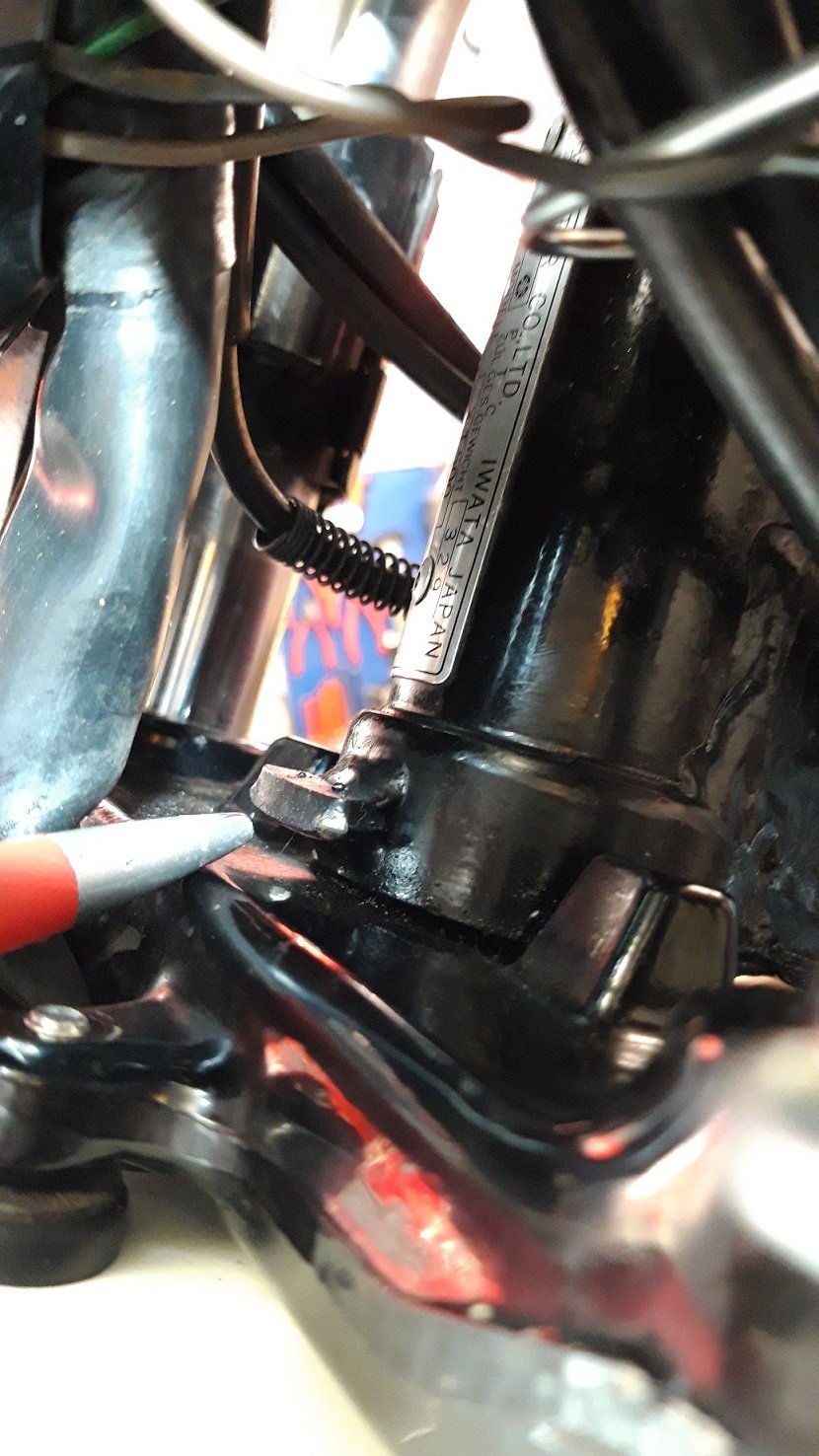 es geht einmal um dieses gewinkelte Blech am oberen Steuerkopfrohr ...und dann um dieses am unteren Steuerkopfrohr ...die normalen Gabelbrückenanschläge wie sie alle anderen XT´s haben sind auch da...sehr seltsam das kenne ich so eigentlich nur bei der SR, die hat als Gabelbrückenanschlag nur diesen mittleren...