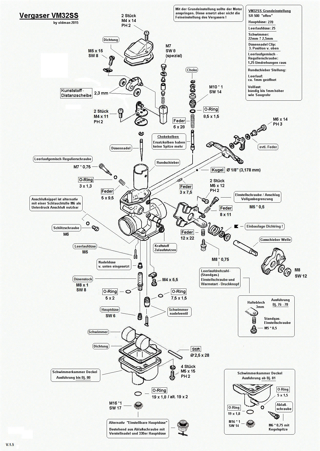 Nun stellt sich die Frage, ob ich ihn weiter zerlege und Düsen checke ggf. tausche, oder ob ich nur die Schwimmerkammer reinige, eine neue Schwimmerkammerdichtung verbaue und alles so lasse wie es ist. Was würtdet ihr zwingend checken, da der Vergaser nun mal ausgebaut ist und Einzelteile im Preis überschaubar sind.