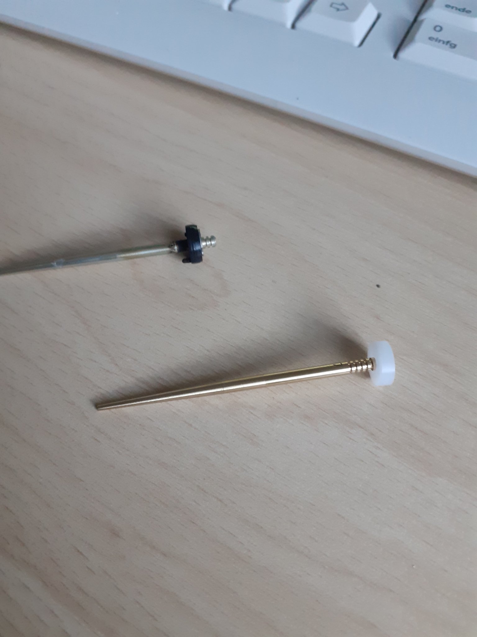 Des weiteren möchte ich die Große Düsennadel wechseln .Das orig. hat den schwarzen Ring fest verklebt an der Nadel . Bei der neuen muss ich den ring hier Weiß aufschieben . Jetzt meine frage schiebe ich von der spitze her oder über die Einkerbungen ? auch hier ein paar Bilder. jetzt schon mal Danke für eure Hilfe.