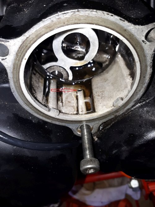 Das gezeigte Loch ist übrigens ein reines Ablaufloch ins Motorgehäusr. Öl kann da nie rauskommen.