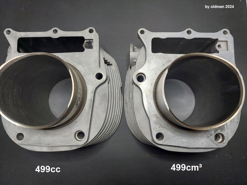Wenn Du Dich entscheidest den originalen zu verwenden, vermeide Zylinder mit der Aufschrift "499cc". Das sind die frühen Zylinder, auch hier sind die nachfolgenden Zylinder mit der Aufschrift "499 cm³" in jedem Fall verstärkt. Ob ein "alter" taugt, sieht man an der Fußfläche (s.u.).