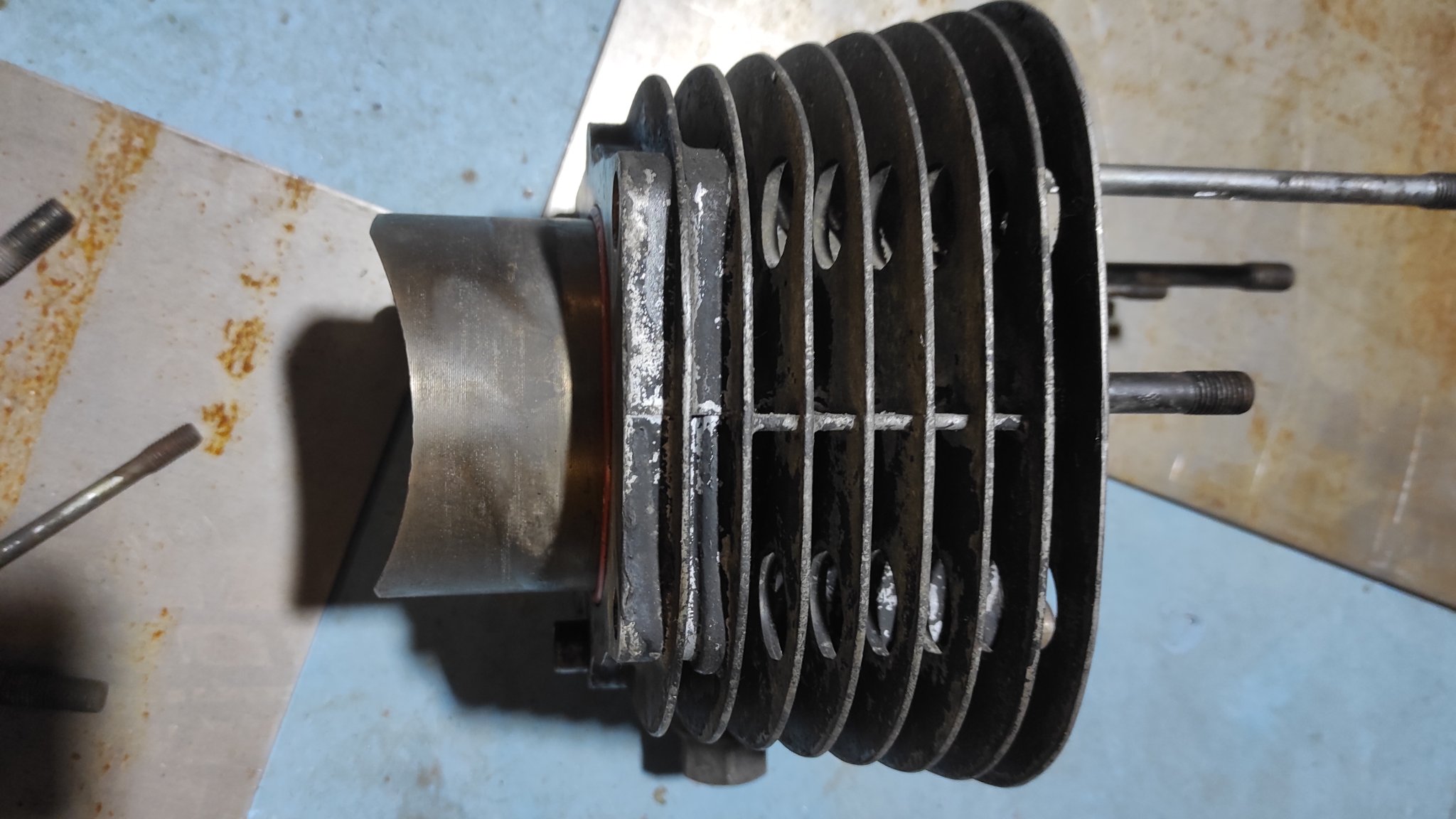 Moin, ich habe mal den zylinder vom 5R1 Motor abgenommen. Der hat die Aufschrift 499cm3,also schonmal gut. Er ist etwas schmuddelig, aber bis auf ein paar Dichtungsreste ganz okay. Die laufbuchse ist etwas rostig, aber kommt ja eh eine neue rein. Die Bohrung liegt auch noch bei 87mm, was mich darauf schließen lässt, dass er noch relativ jung ist.