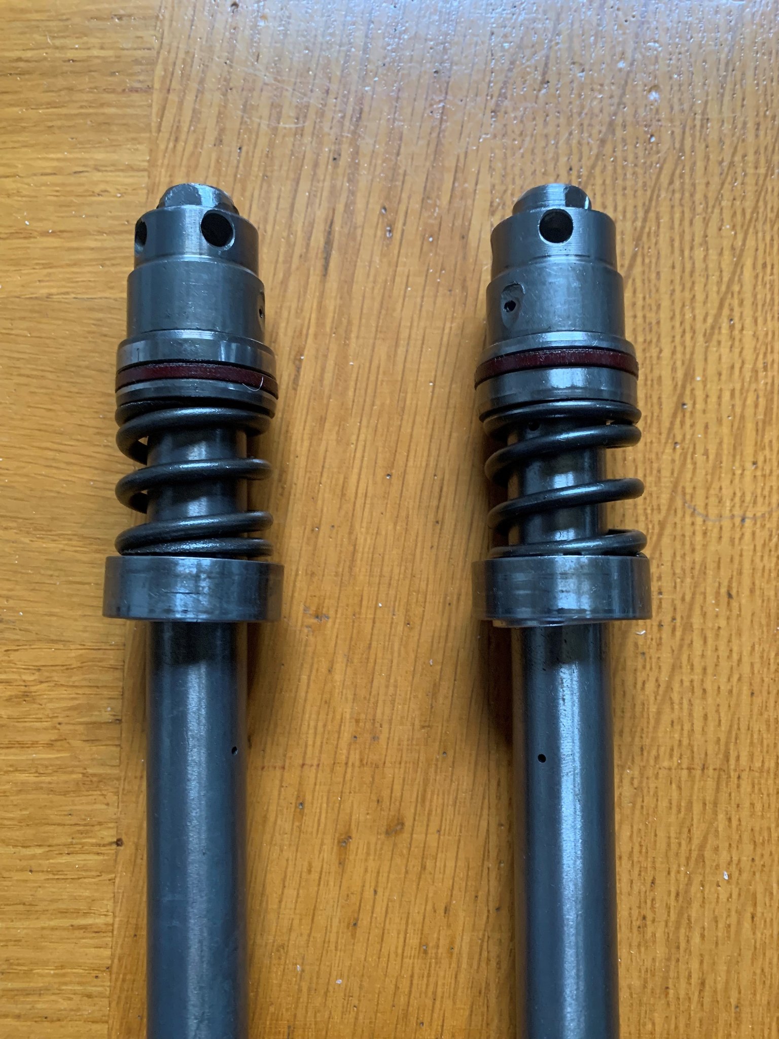 Ich bin gerade dabei eine 79er XT komplett zu restaurieren. Beim zerlegen der Gabel ist mir zufällig aufgefallen, dass die Dämpferkolben asymmetrisch sind. Soll heißen, in dem einen sitzt der Kolbenring höher als im anderen Kolben. Da man den Kolben aufgrund seiner Bauform nicht einfach umdrehen kann frage ich mich, ob es in den verschiedenen Baujahren ggf. unterschiedliche Kolbenbauformen gegeben hat und ob einer der Vorbesitzer diese munter gemischt hat?