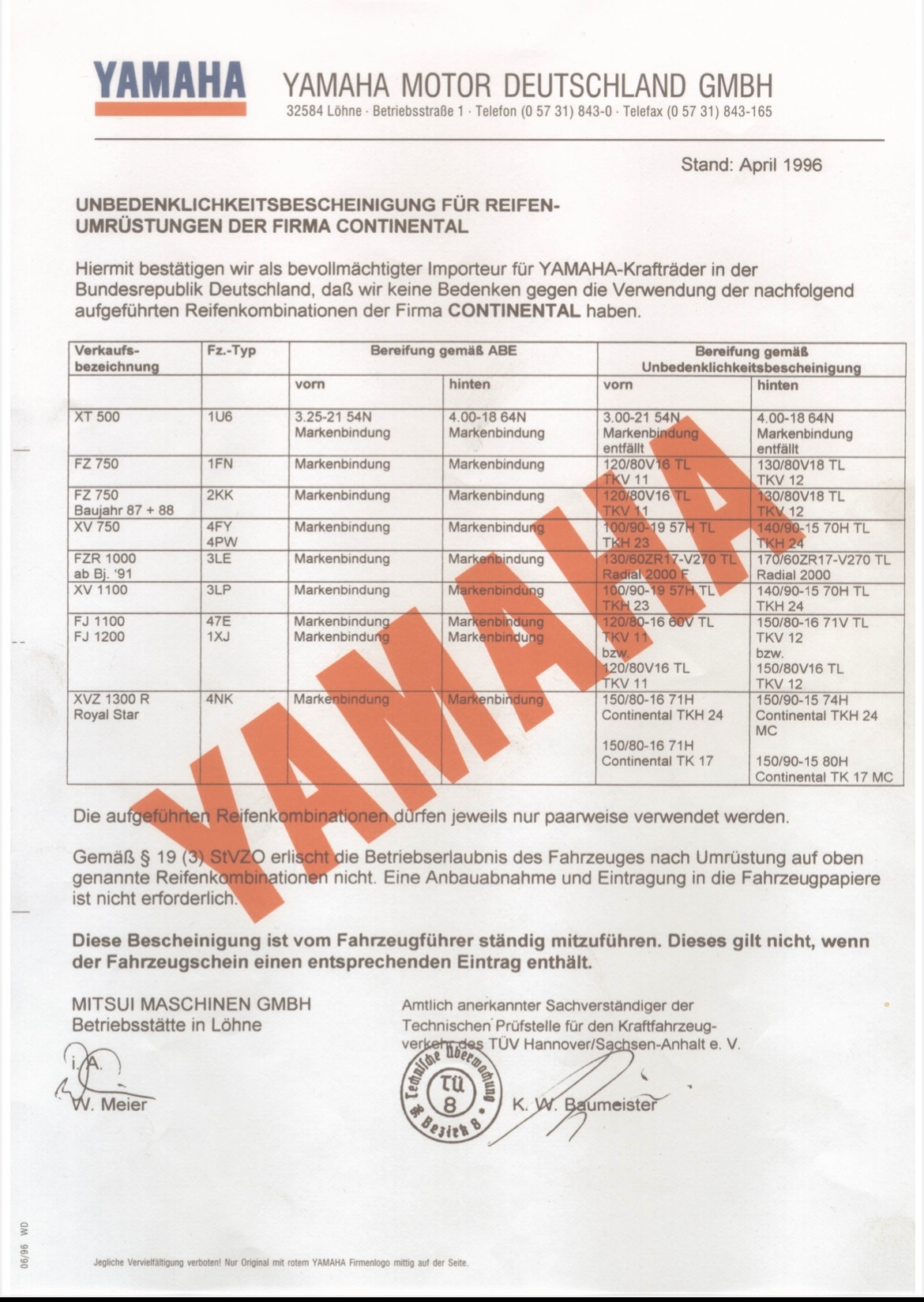 Bei meiner XT war der 3.00-21 eingetragen und die Reifenbindung ausgetragen, ob die Bescheinigung im Anhang die Grundlage war, kann ich nicht sagen, das hat der Vorbesitzer machen lassen.