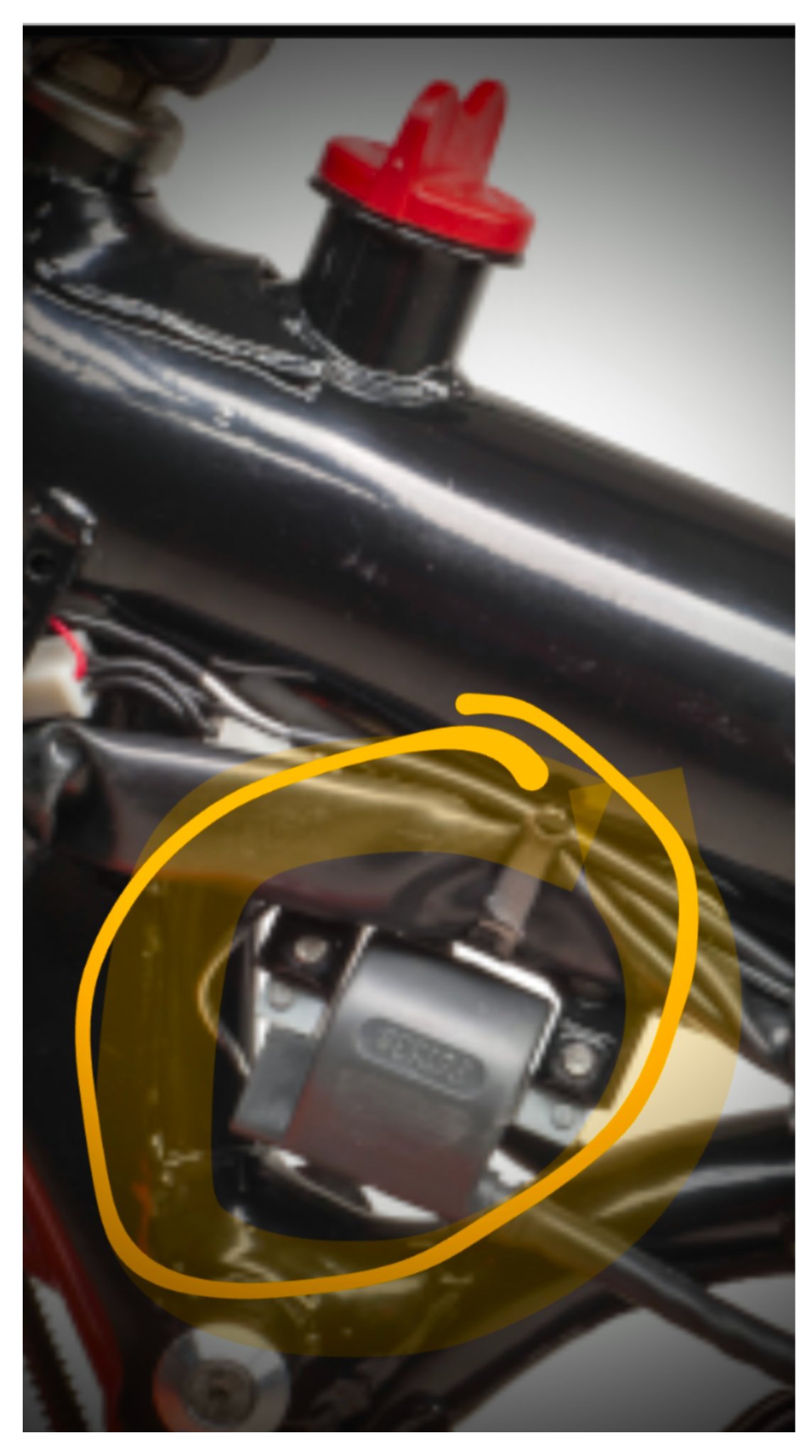 ...Beschleuni, ...das ist die Zündspule...... (an dem... was ist das weiss vergilbte Kunststoffteil am Rahmen?) ...