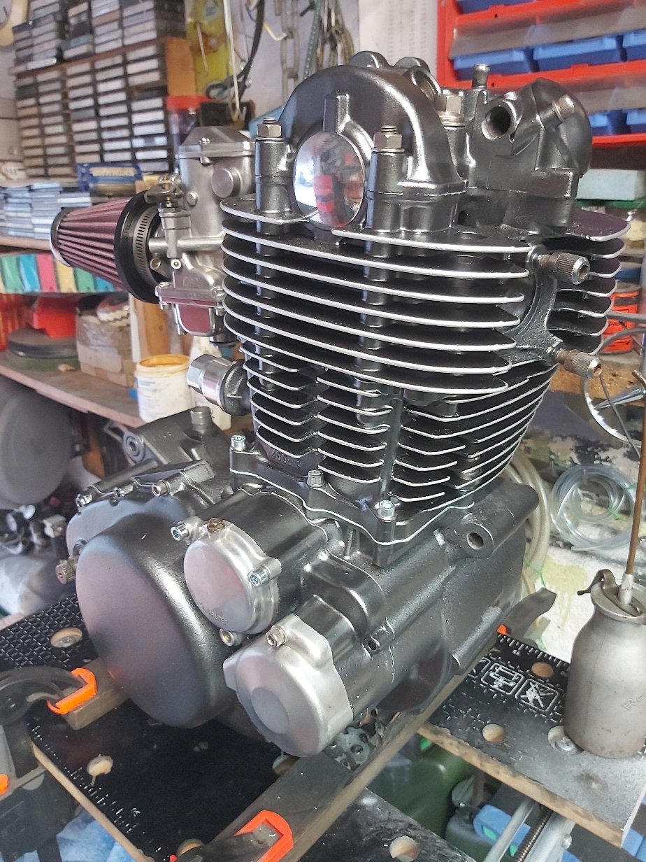 Frühere Umbauten: 49 EV, verstärkte VA Speichen, 34SS, 90er Kolben, vert. Ölpum, alle Lager neu, Elefantenfüße, Doppelkoklbenbr. 140/80/18 + Felge und und und den Rest sollte man erkennen können oder auch nicht